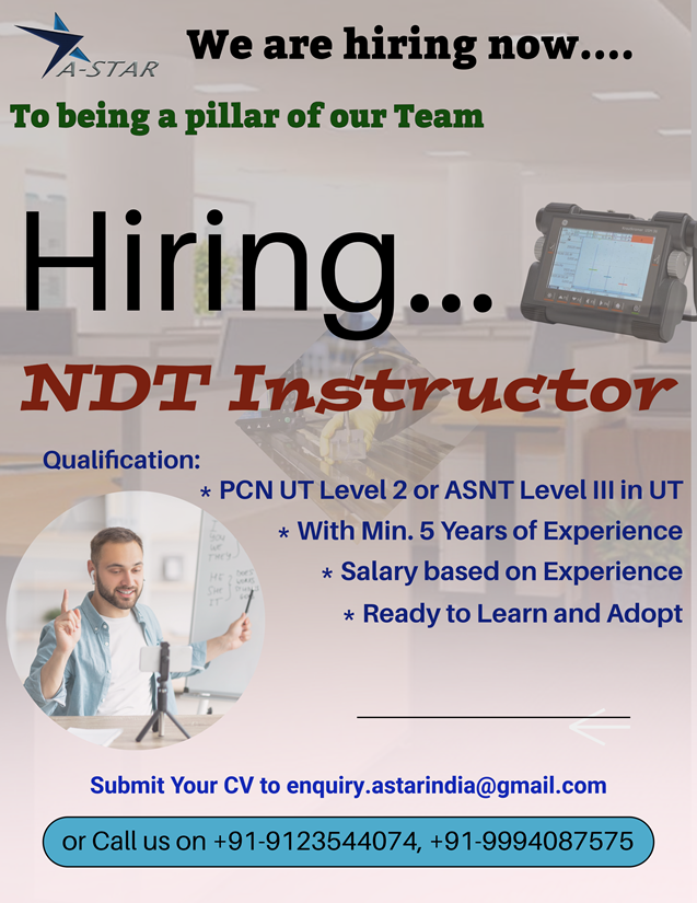 ISO 9001:2015 certified company, established in 2013. Astar India is one of the leading NDT trainings & service providing organization in conventional and advanced NDT applications located in Chennai, Tamil Nadu-India.